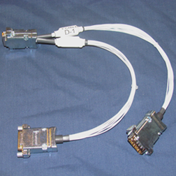 The D-1 "Y" cable allows the MCD-100 to be placed between an altitude encoder or encoding altimeter and the aircraft's transponder. The D-1 cable consists of a male and a female 15-Pin "DSUB" connector wired to a single male "DSUB" connector by sets of 14 MIL-STD 22759/16 22ga. wires. The length of the wire sets is approximately 11 inches between all-metal housings. This cable assembly is designed to be used with altitude encoders that use a standard, 15-Pin "DSUB" connector, the most common configuration for an altitude encoder. A ferrite bead is provided for each wire set as an extra measure to ensure there is no electrical interference with other instruments and avionics.